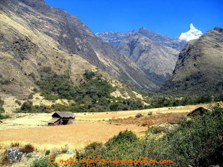 Recojo del hostal y traslado en trasporte privado Huaraz – Caraz. Desde esta ciudad estaremos desviando hacia la parte Este de la Cordillera Blanca subiendo hacia el pueblo de Cashapampa, en donde nos espera los burros y arriero que se encargaran en llevar nuestros equipajes personal y de campamento, saliendo de Cashapampa y nos dirigiremos hacia la quebrada de Santa Cruz después de 4 horas de trek estaremos llegando al campamento de Llamacorral.