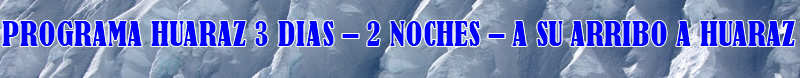 - La reservación del siguiente programa se realiza con el 40% del precio total y el saldo a pagarse a su arribo de Ustedes a Huaraz.