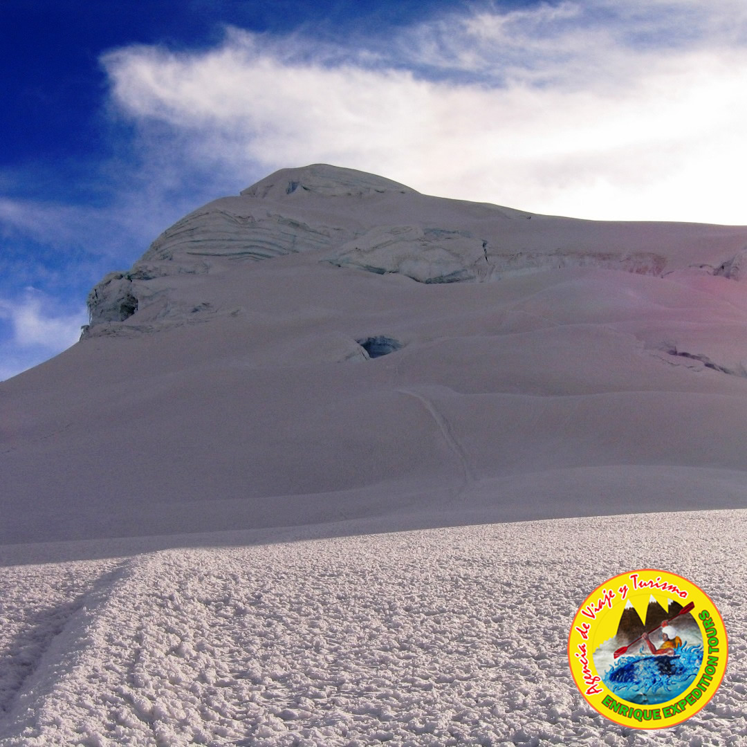 Saldremos de campamento aprox. 3:00am. Y escalaremos corredores (65 – 70º) que nos llevara a la parte alta de la Garganta (6010m) y de este punto estaremos subiendo largas lomas, y evitaremos grandes grietas hasta llegar a alcanzar la cumbre cimera del Huascarán (6768). Jornada de aprox. 12 horas,
