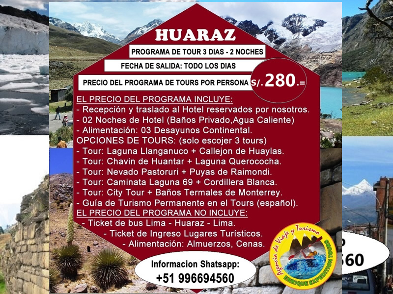 PROGRAMA DE TOURS EN HUARAZ ANCASH PERÚ. |