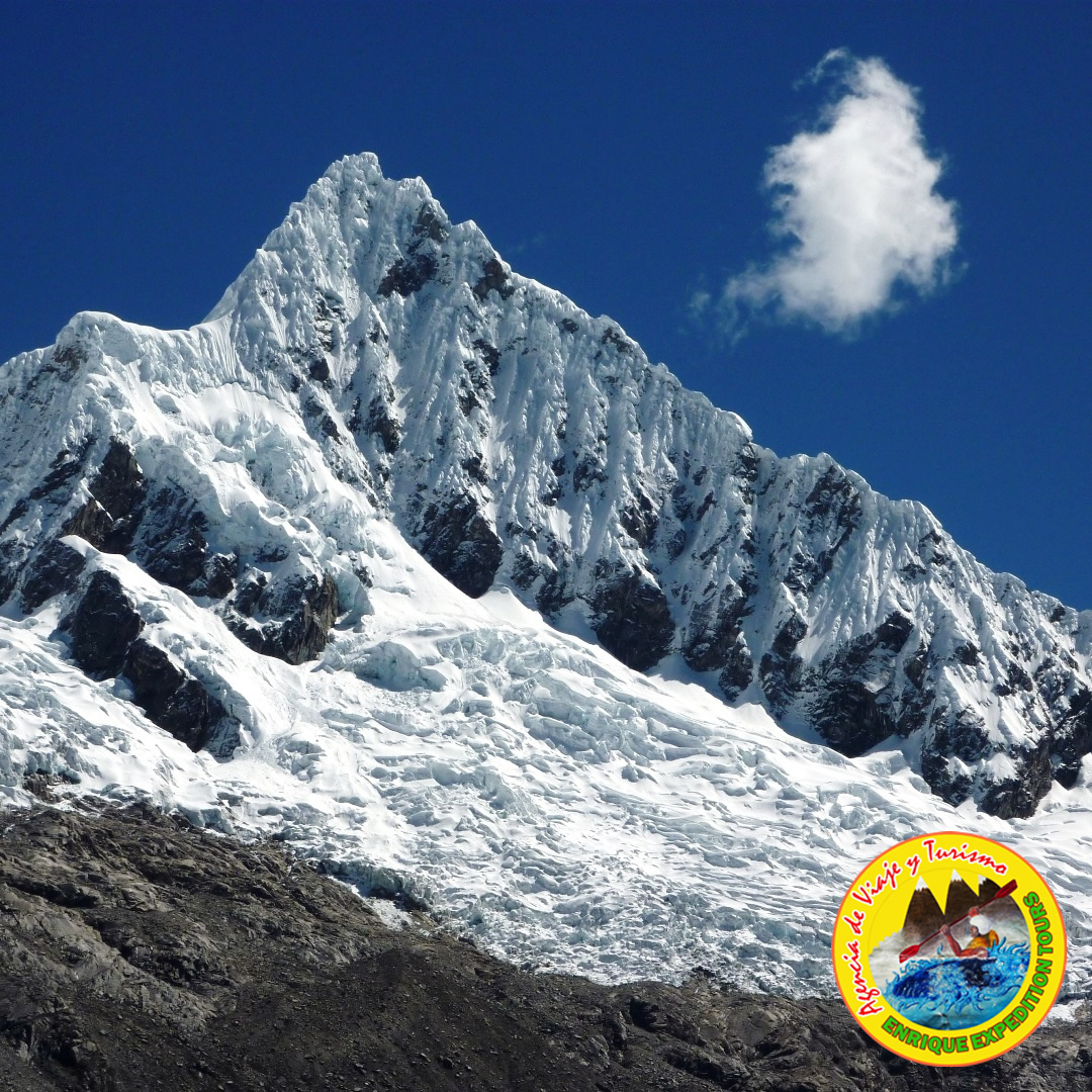 El Alpamayo, junto con nuestro imponente Huascarán, son las más famosas montañas de la Cordillera Blanca y también son los principales objetivos de los montañeros que llegan por primera vez lo que tienen en su punto de mira como una montaña necesaria para su historia deportiva para el ascenso a la montaña más bella del mundo.