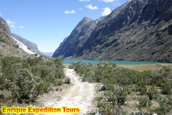 Este día depuse de disgustar de un buen desayuno nos estaremos dirigiremos hacia el campo base, la ruta es por el mismo lugar por donde llegamos a este punto, ya encontrándonos en el campo base estaremos nuevamente cargando nuestro equipaje en los burros para entrar nuevamente a la quebrada de Santa Cruz - laguna Jatuncocha lugar donde situaremos el campamento de este día.