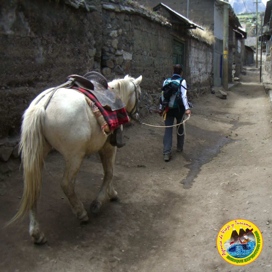 with our journey through the Calinca ravine downhill until we reach the town of Huayllapa. Route of 18 kilometers and 7 to 8 hours. Fin daytime.