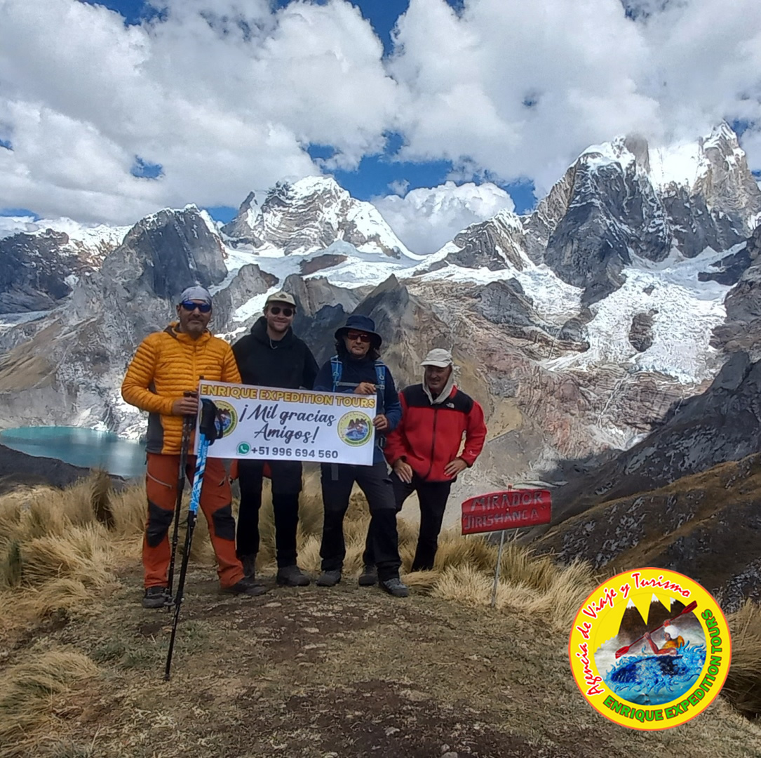 After breakfast we start walking towards the lagun to Siula, first passing through the Gangrajanca lagoon, then we pass through the Siula lagoon where we begin to climb to the viewpoint of the three lagoons; from where you can take panoramic photographs of the mountains; jirishanca chico (5445), Yerupaja grande (6632masl), yerupaja chico (6121masl), jirishanca gran de (6094), and the siula chico (6634msnm), Yerupaja grande which is the second highest peak in Peru (6634masl). This viewpoint is considered the second most beautiful sight in the huayhuash. We continue the walk until we reach the Siula pass at an altitude of 4800msnm, from there we descend to the Carnicerococha lagoon, then we