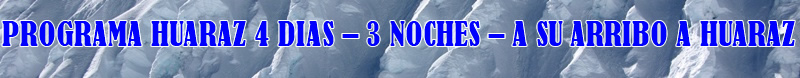 - La reservación del siguiente programa se realiza con el 40% del precio total y el saldo a pagarse a su arribo de Ustedes a Huaraz.