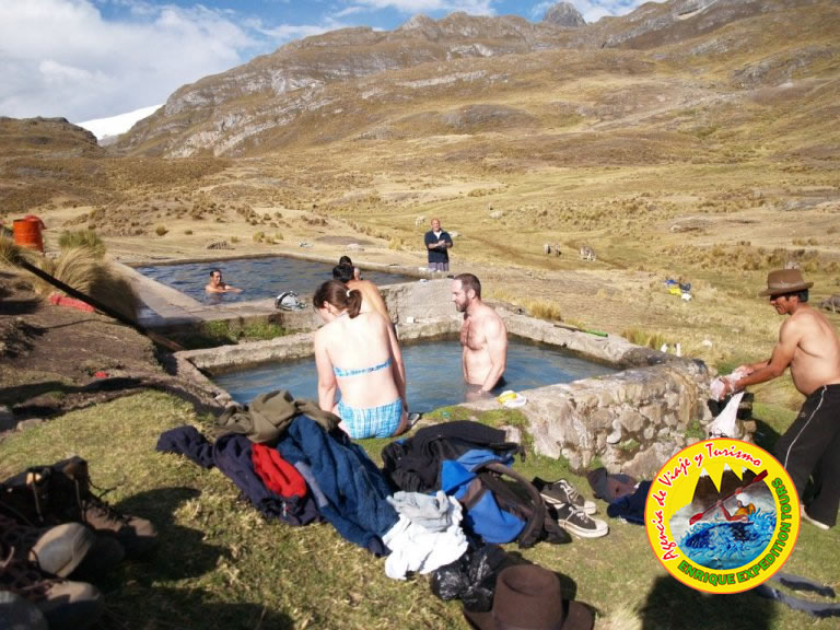 We will leave very early to pass the fourth pass of Portachuelo (4750m). There we can see the mountains Puscanturpa, Cuyoc, Millpo and a part of the Cordillera Raura. After we will arrive at our campsite in Viconga (4300m) you will have the chance to take a bath in the hot springs of Atuscancha (4000m).