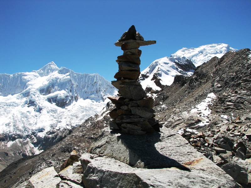 Por la mañana después del desayuno nos dirigiremos hacia el Paso Portachuelo (4767m) en este punto observaremos lo nevados del Huascarán, Chopicalqui, Huandoy, Pisco, Chacraraju. Luego descenderemos por el camino llamado Chaquinani hasta llegar al campamento Cebollapampa.
