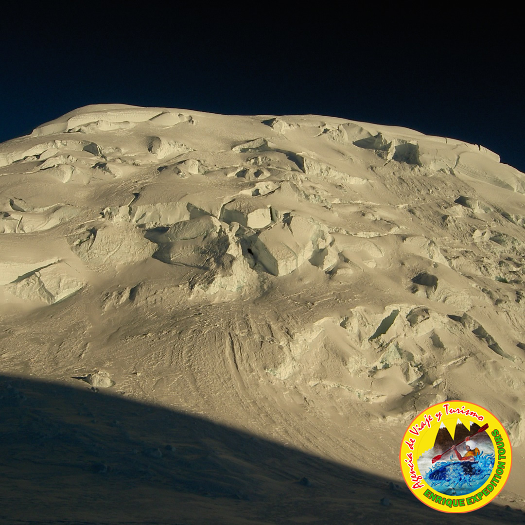 Saldremos de campamento aprox. 3:00am. Y escalaremos corredores (65 – 70º) que nos llevara a la parte alta de la Garganta (6010m) y de este punto estaremos subiendo largas lomas, y evitaremos grandes grietas hasta llegar a alcanzar la cumbre cimera del Huascarán (6768). Jornada de aprox. 12 horas,