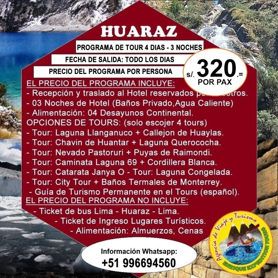 PROGRAMA SIN TICKET DE BUS HUARAZ 4 DIAS 3 NOCHES |