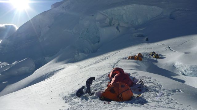 Starting at the base camp in the moraine we will reach the edge of the glacier. From there we will climb higher to get to a safer place, towards the base of a large barrier Seracs. There we will put up our camp 1 in the glacier.