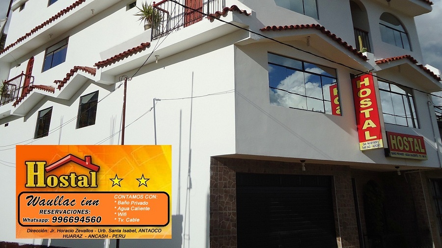 HOSTAL EN HUARAZ "WAULLAC INN" está ubicado a 5 minutos en taxi de la Plaza de Armas de Huaraz, en el distrito de Independencia – Huaraz, Cerca de los principales lugares turísticos, como el centro recreacional de Wuallac, piscicultura en huaraz, Jr. Más antiguo de Huaraz José Olaya, Templo del Señor de la Soledad, Mirador Turístico en Huaraz, ubicados en una zona tranquila y campestre de Huaraz, les ofrecemos habitaciones, equipadas con TV - Cable, baño privado con agua caliente las 24 horas, teléfono, Internet Wi Fi, Restaurat - Cafeteria, desayuno regionales, continental o buffet en caso de grupos (a solicitud ), Almuerzos y Cenas con comida Típico de Huaraz; servicios complementarios como: servicio de traslado gratuito del terminal de bus en Huaraz al hostal, custodia de equipajes, cafeteria restaurante, servicio de internet las 24 horas, lavandería, cambio de moneda, esto siempre acompañado y en contacto directo con la naturaleza; a todo esto resaltando nuestro servicio profesional y personalizado hacia todos nuestros huéspedes y clientes. |